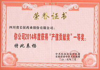 長(zhǎng)藥公司——年度產(chǎn)值貢獻(xiàn)獎(jiǎng)一等獎(jiǎng)